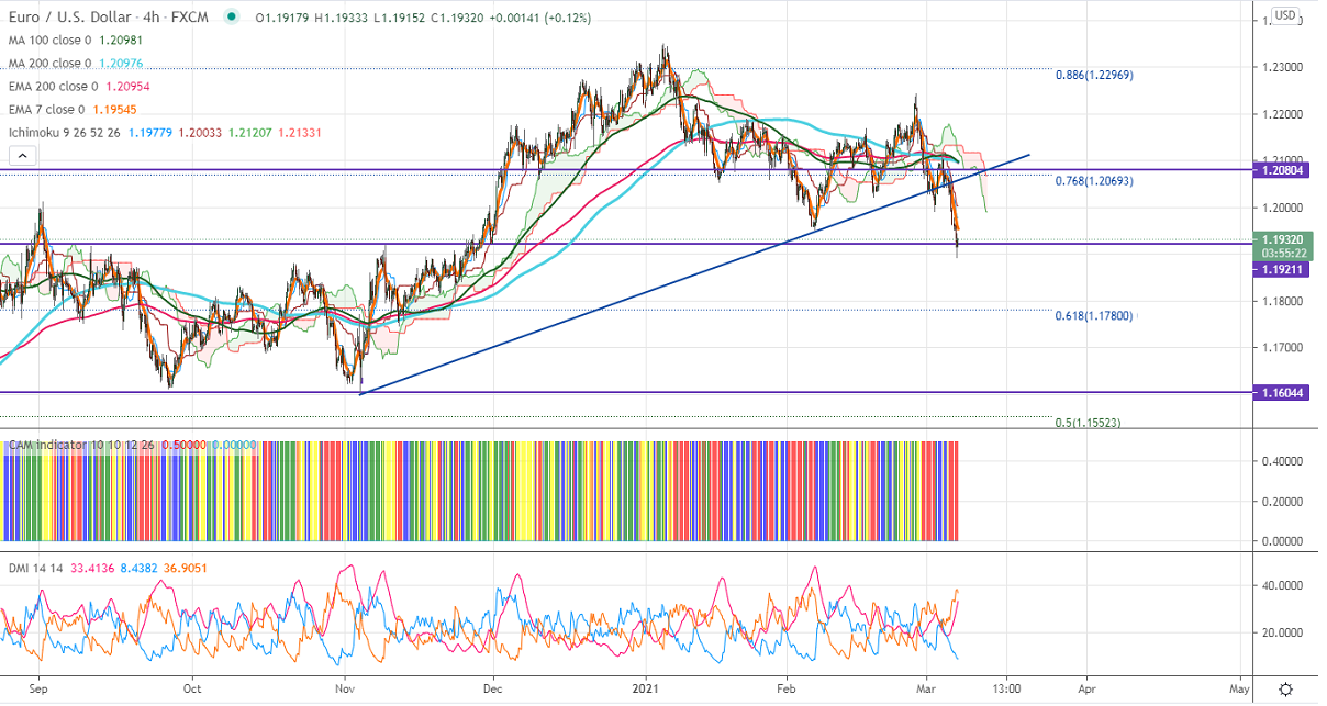 EURUSD declined once again after a minor recovery till 1.19433 after better than expected US non-farm payroll data. It came at 379k in Feb much above expectations of 148k. The unemployment rate declined to 6.2% vs an estimate of 6.3%. Average hourly earnings came in line with an estimate at 0.2% The US bond yield jumped to 1.62% after positive jobs data. DXY gained above 92 and hovering near that level. EURUSD hits an Intraday low of 1.18933 and is currently trading around 1.19179.