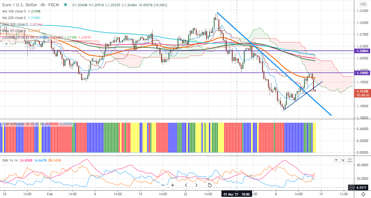 EURUSD declined after massive recovery till 1.19898. The minor sell-off came after a strong rebound in US bond yield. The pair surged after ECB that it is planning to increase the pace of bond buying to compete for a pandemic. But slow vaccination in Europe is putting on this pair at higher levels.