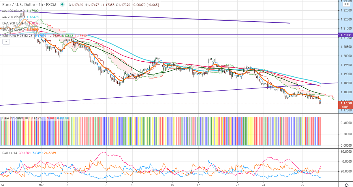 DXY is holding above 93 levels after minor consolidation. A jump till 93.40/93.60 likely. EURUSD hits an intraday low of 1.17333 and is currently trading around 1.17411.