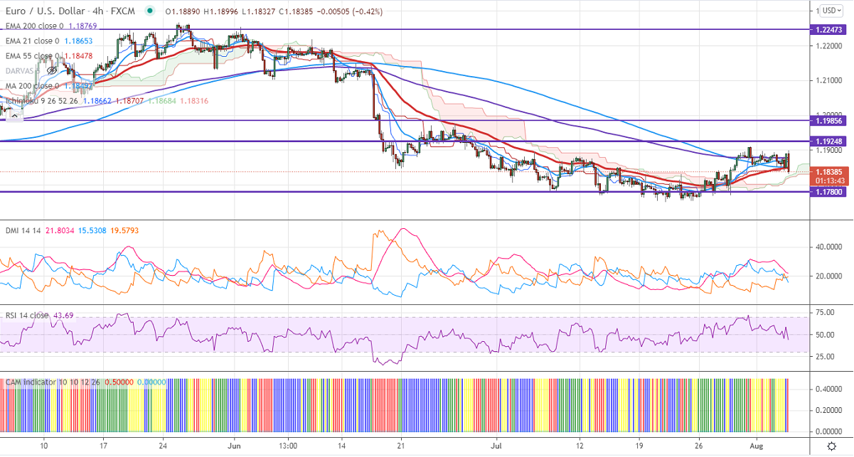EURUSD has lost more than 50 pips on upbeat US SIM services data. It hits a record high in July at 64.1 compared to a forecast of 60.40. The US private sector has added 33000 jobs in July well below expectations of 695000. The pair hits an intraday low of 1.18327 and is currently trading around 1.18382.