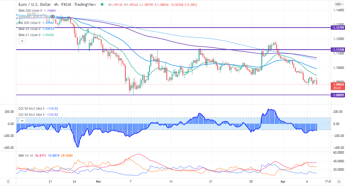 The pair trades weak after the Fed meeting minutes. It planned to shrink its balance sheet by $95 billion per month. Many Fed members prefer 50 basis point rate hikes in the next Fed monetary policy. US 10-year yield spiked after Fed meeting minutes and hits the highest level since Apr 2019. The pair made a low of 1.08741 yesterday and is currently trading around 1.08977.