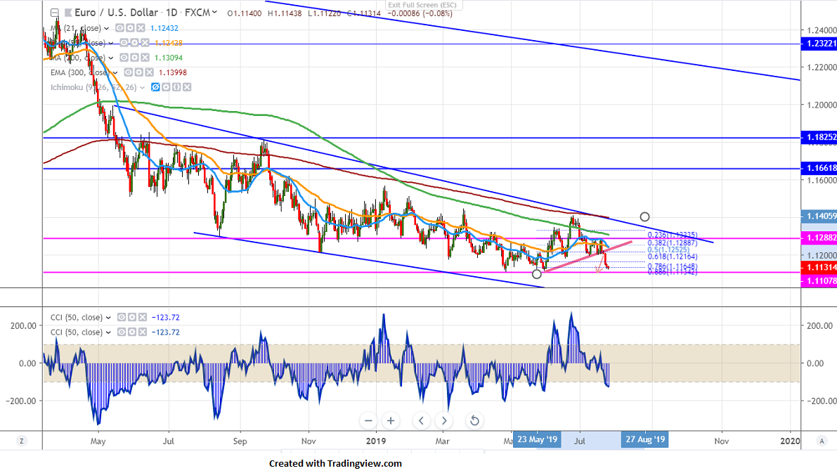 ECB cuts interest rates by 10 bpbs and planning to go for QE in the coming months if the outlook does not improve. The pair will break the low of 1.11069 and the chance of reaching till 1.09097 (161.8% fib) is possible.