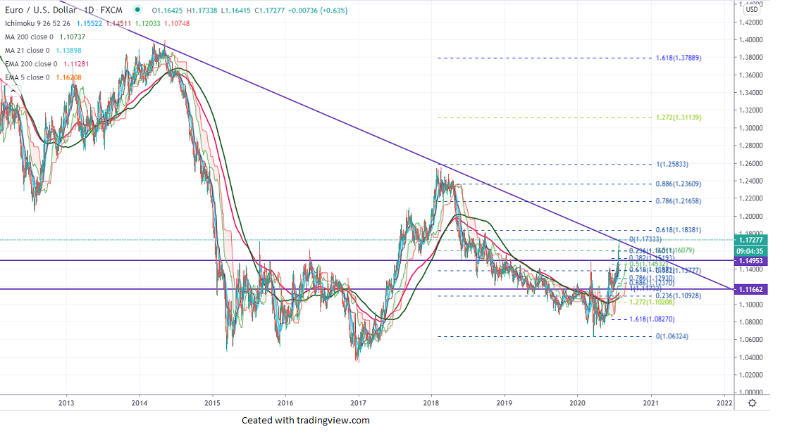 The pair has broken 12- year trend line resistance 1.17200 and it confirms follow-through buying, a jump till 1.1800/1.18250 likely. The near term support is around 1.16800, violation below will take the EURUSD till 1.1640/1.1600.