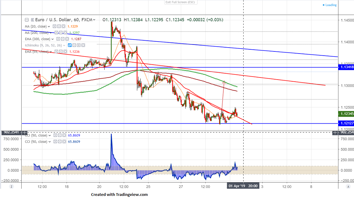 EURUSD consolidating in narrow range after hitting low of 1.12100. The pair has slightly recovered after better than expected Chinese PMI data and trade optimism over progress of trade talks between US and China.It hits intraday high of 1.12500 and trading around 1.12313. Overall trend is still weak as long as 1.1300 holds.Markets eye US retail sales and ISM Manufacturing index for further direction.