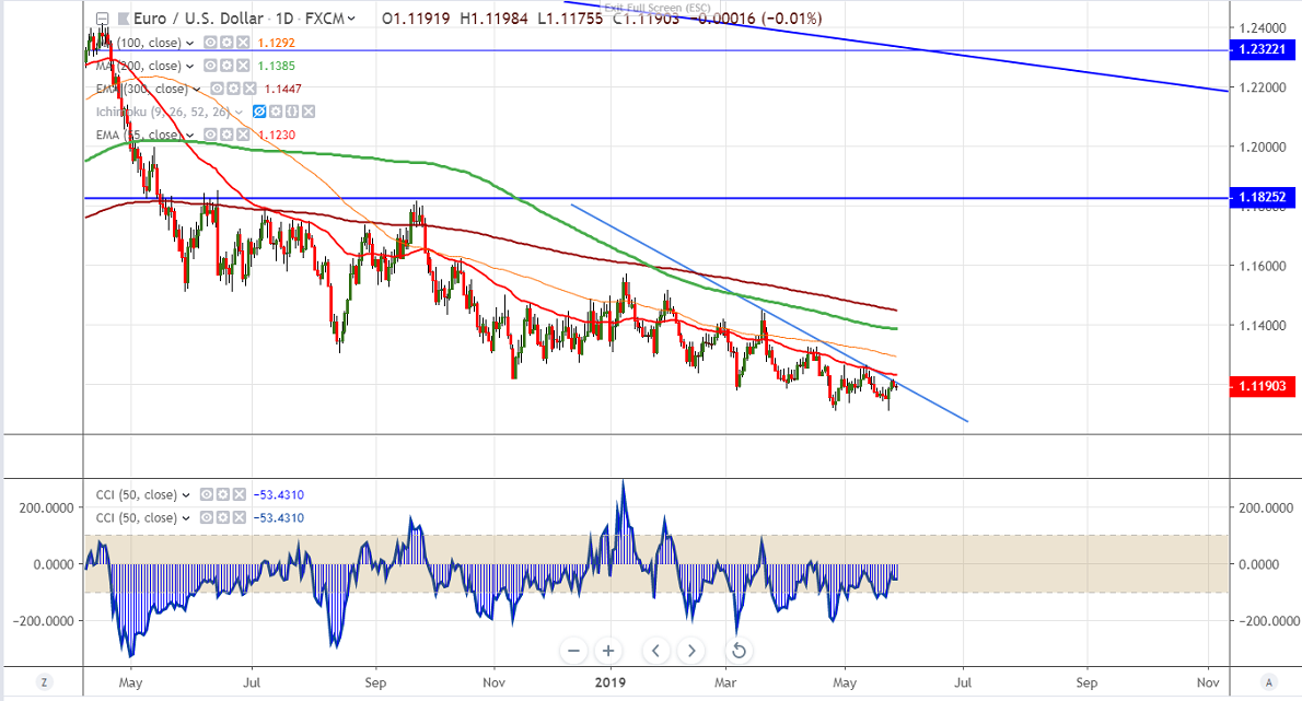 EURUSD is consolidating near 1.12000 level after hitting high of 1.12152 level. The European elections results show that anti-European parties on the whole failed to perform much better as most of them expected outperform. The EPP and S&D has lost more than 70 seats and also majority. The populists and euro skeptic parties vote share increased from 20% to 25%. The pair hits intraday low of 1.11750 and is currently trading around 1.11938.