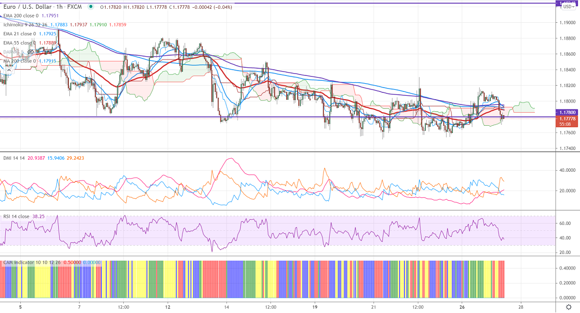 EURUSD is trading weak after a minor pullback above the 1.1800 level. The surge in delta variant Coronavirus and decline in German IFO business climate is putting pressure on Euro. The slump in Chinese tech shares for the second consecutive days due to a crackdown by Chinese authorities on tech and other industries has increased demand for safe-haven like the US dollar. Markets eye US durable goods orders and Conference board consumer confidence for further direction. The pair hits an intraday low of 1.17744 and is currently trading around 1.17780.