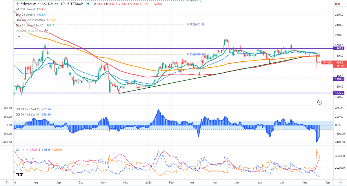 ETHUSD trading was weak and lost more than $400 following the footsteps of Bitcoin. The upbeat US retail sales and Philly Fed manufacturing index has increased the chance of another 25 bpbs rate by the Fed this year. It hits a low of $1542.60 and is currently trading around $1666.50.