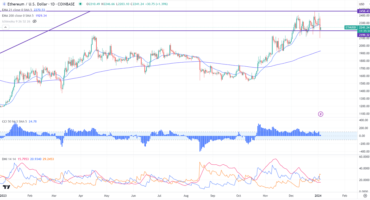 The bullish invalidation can happen if the pair closes below $1870. On the lower side, the near-term support is $2100. Any break below targets $1935/$1870. Significant downtrend if it breaks $1500.