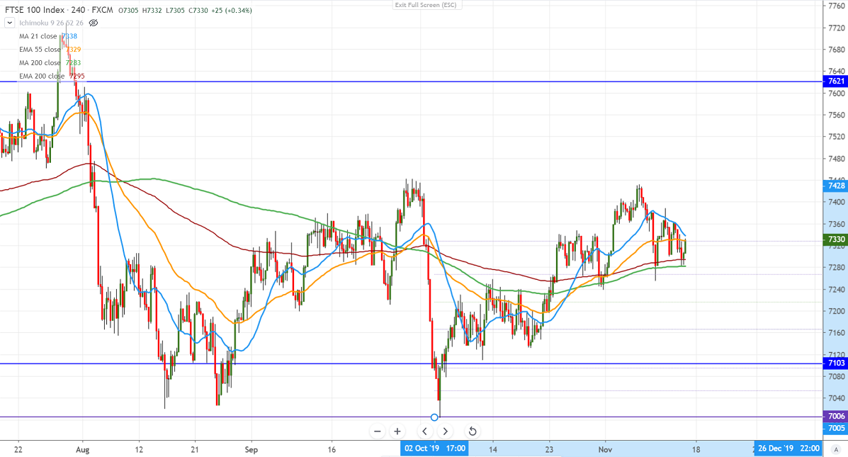 FTSE100 is underperforming compared with global peers and lost more than 150 points from minor top 7431 level. The decline was mainly due to a sharp fall in 3i private equity firm share and strong Pound which affected export-oriented stocks. It hits low of 7281 yesterday and is currently trading around 7326.