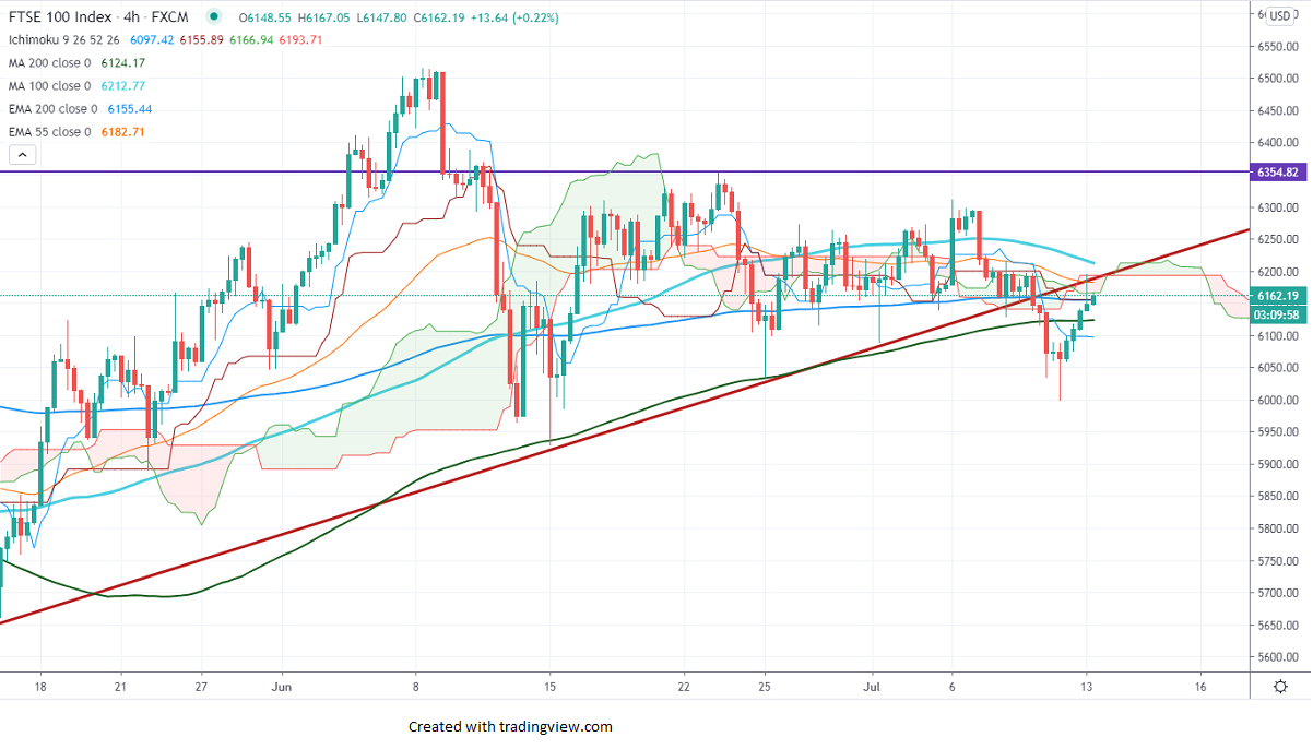 The immediate support is around 6123 (200-4H MA), an indicative violation below targets 6100/6035/6000/5900. Bearish continuation only if it breaks below 5891.