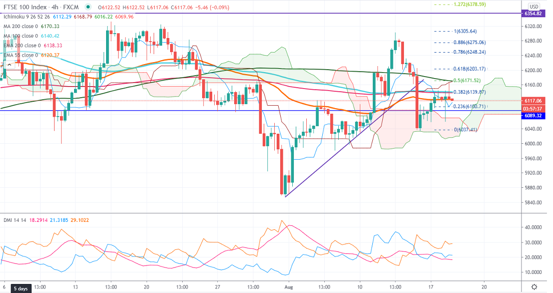 FTSE100 showed a minor recovery of more than 100 points following the footsteps of US markets. The surge in Pound sterling on dollar weakness and growing unemployment is putting pressure on FTSE100. Markets eye UK and EUE negations on Brexit this week for further direction. The S&P futures are trading flat and currently trading around 3385.