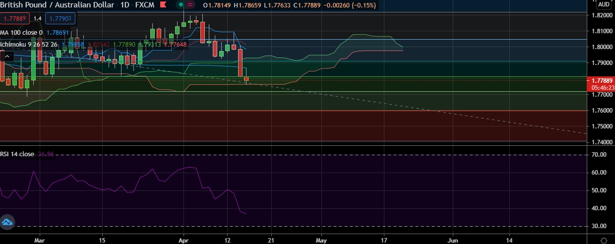 • Strong support is seen at 1.7760 (Ichimuku Cloud base) and break below could take the pair towards 1.7717 (38.2%fib).
