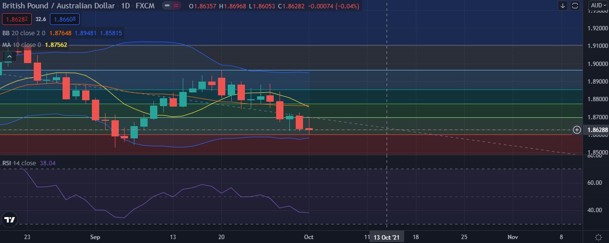 •The pair failed to breach a key support at 1.8601 (23.6% fib ) as investors booked profits.