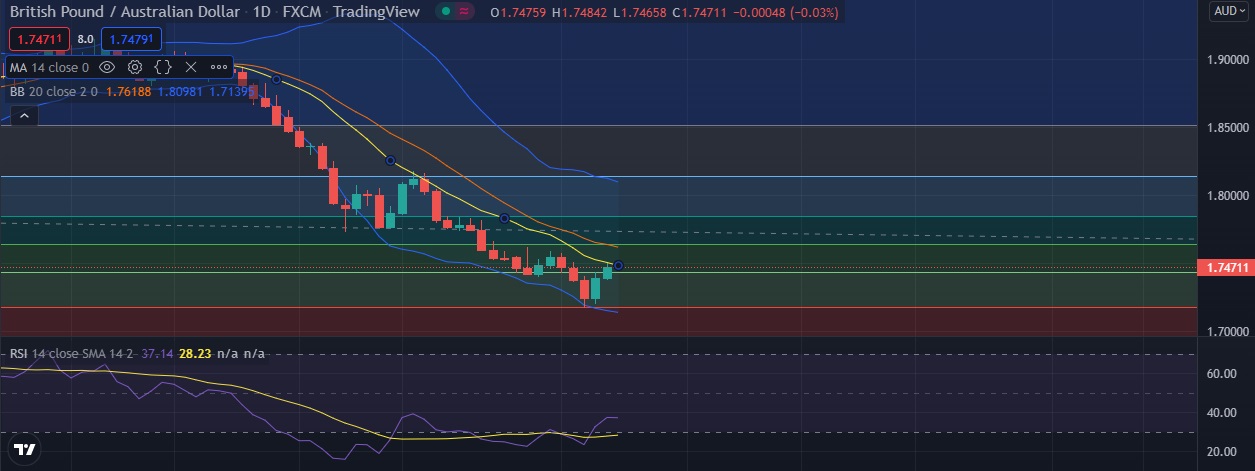 • The pair currently is approaching resistance at 1.7502( 5DMA). A break above 1.7502 would unmask 1.7650 level in the short term.