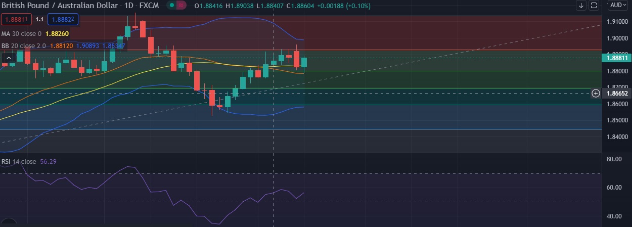 • At GMT 17:25, the pair was trading up 0.31 percent at 1.8878 after reaching daily low at 1.8794.