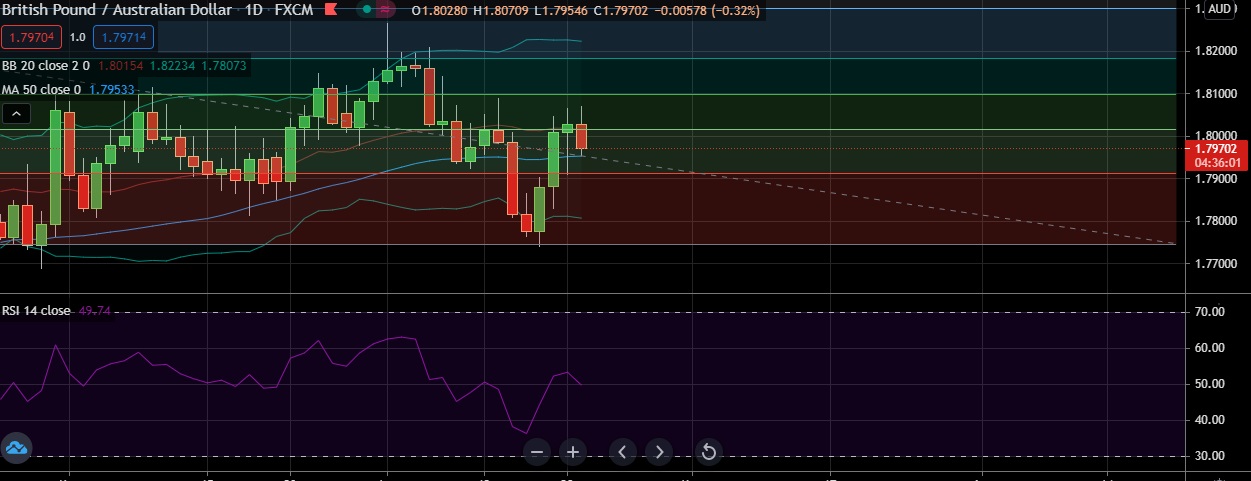 • Immediate support is seen at 1.7952 (50DMA ) and break below could take the pair towards 1.7914 (23.6%fib).