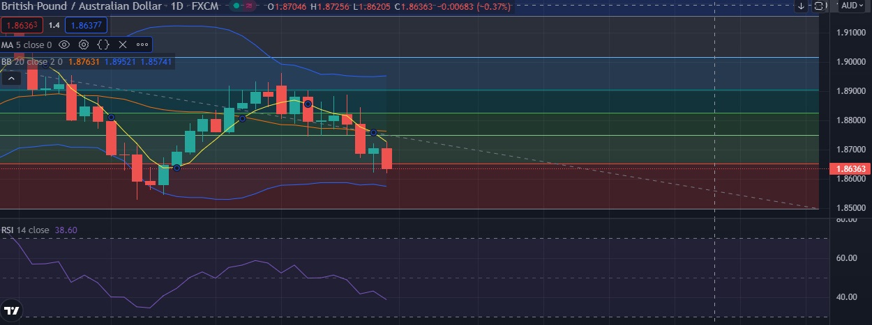 •Strong support is seen at 1.8621 (Daily low) and break below could take the pair towards 1.8573 (Lower BB).