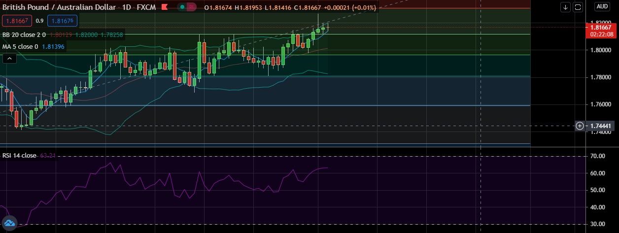 Recommendation: Good to buy around 1.8140, with stop loss of 1.8100 and target price of 1.8250