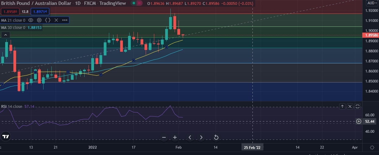 • Immediate support is seen at 1.8936(50% fib) and break below could take the pair towards 1.8830(61.8%fib )