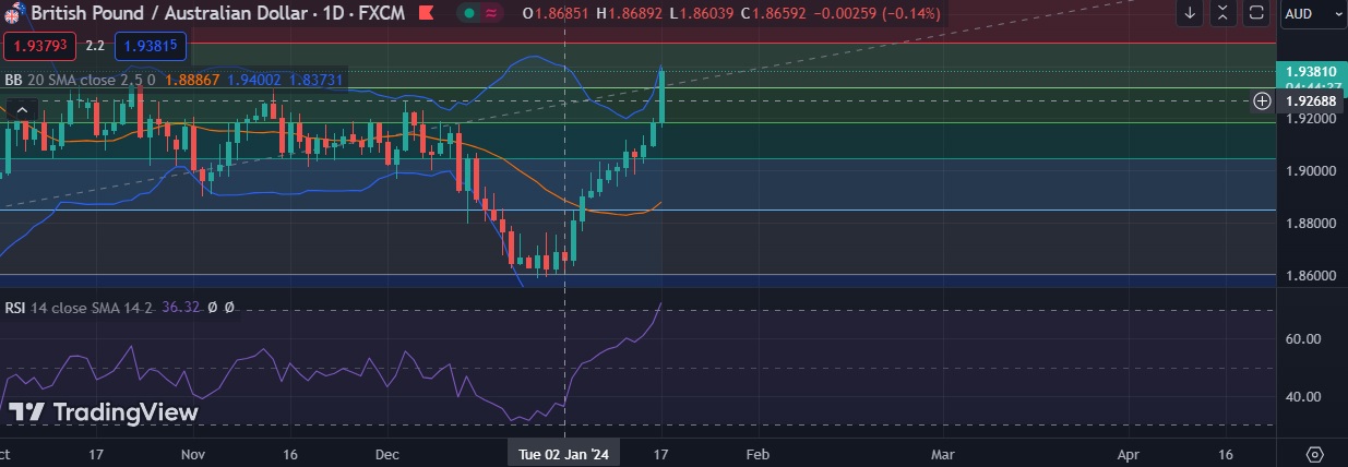 • GBP/ AUD rose towards 1.9385 on Wednesday as pound was buoyed by UK December inflation data that surpassed earlier forecasts.