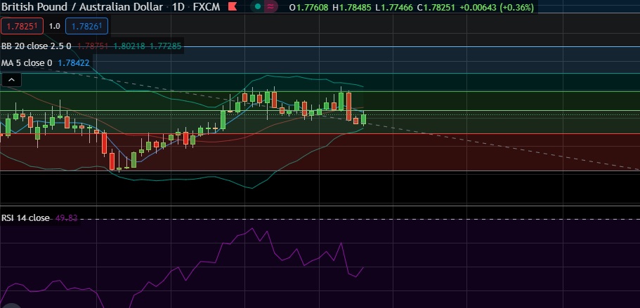 • Strong support is seen at 1.7724(Lower BB) and break below could take the pair towards 1.7685(23.6%fib).