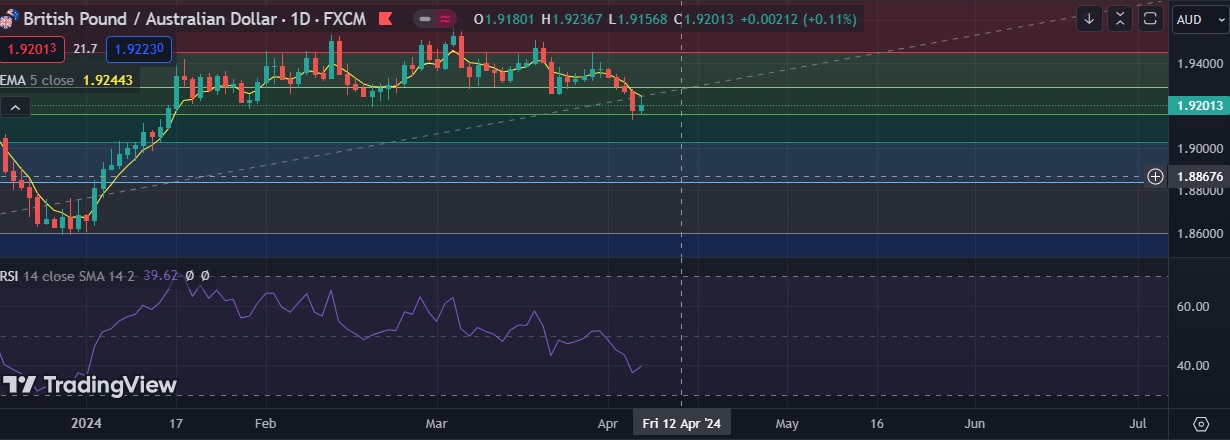 • Immediate resistance is located at 1.9240( 5EMA), any close above will push the pair towards 1.9292 (38.%fib).