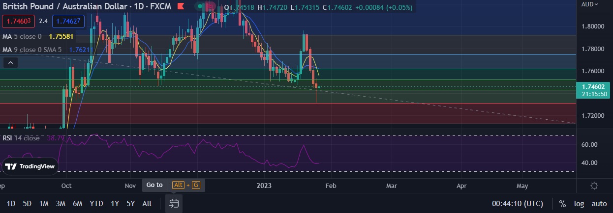 • The pair hit daily low at 1.7313, it was last trading at 1.7460.