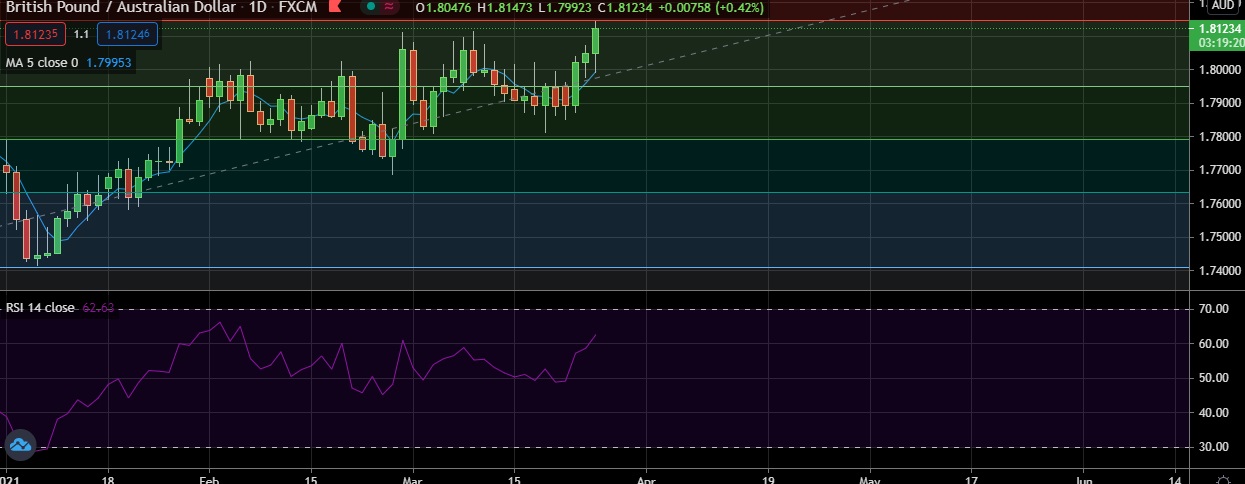 • GBP/AUD gained sharply on Thursday as riskier currencies like Australian dollar lost out on expectations of stronger U.S. economic growth, rising U.S. bond yields and new COVID-19 lockdowns in Europe.