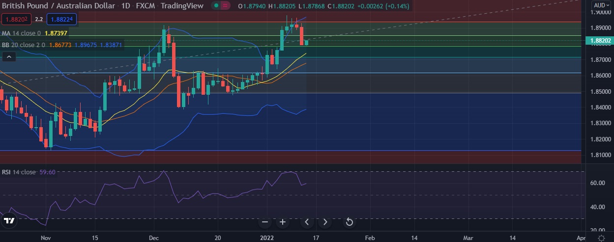 • Strong support is seen at 1.8781 (50% fib) and break below could take the pair towards 1.8740(14DMA).