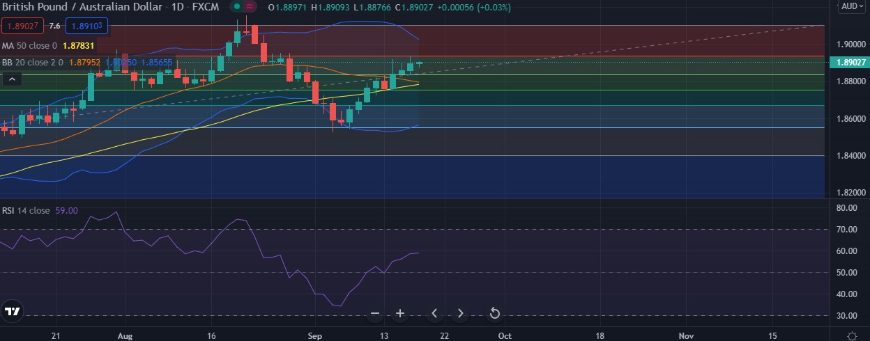 • At GMT 21:42, the pair was trading 0.03% higher at 1.8904 after reaching daily high at 1.8937