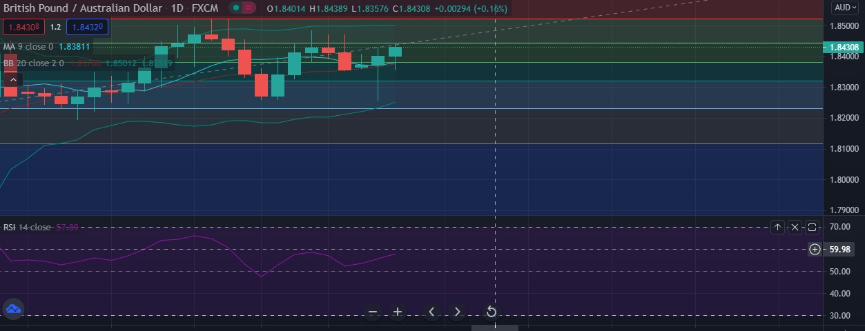 • GBP/AUD bulls confidence is running high, a test of the 1.8502 (Higher BB) highly seem s likely.