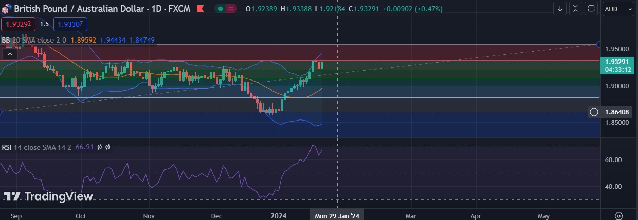 • Immediate resistance is located at 1.9352(23.6%fib), any close above will push the pair towards 1.9414(Higher BB).