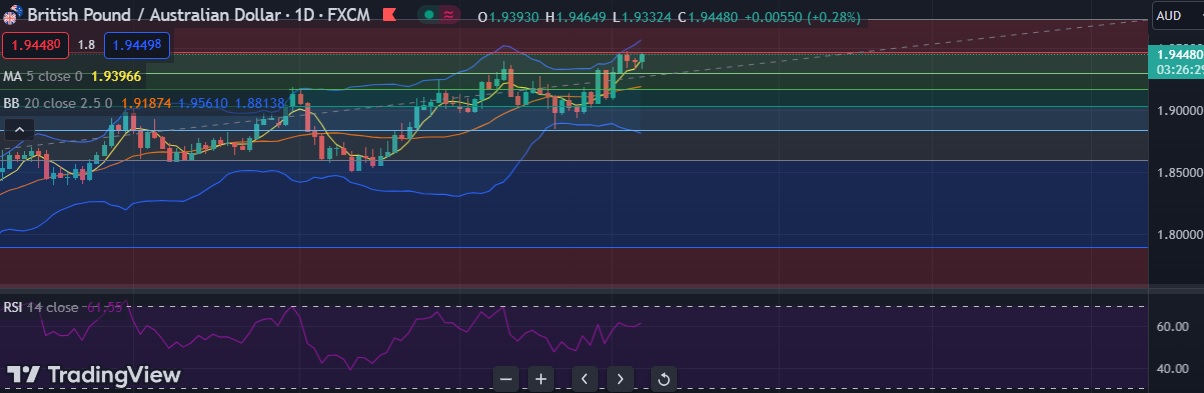 • Immediate resistance is located at 1.9465 ( 23.6%fib), any close above will push the pair towards 1.9526 (Higher BB).