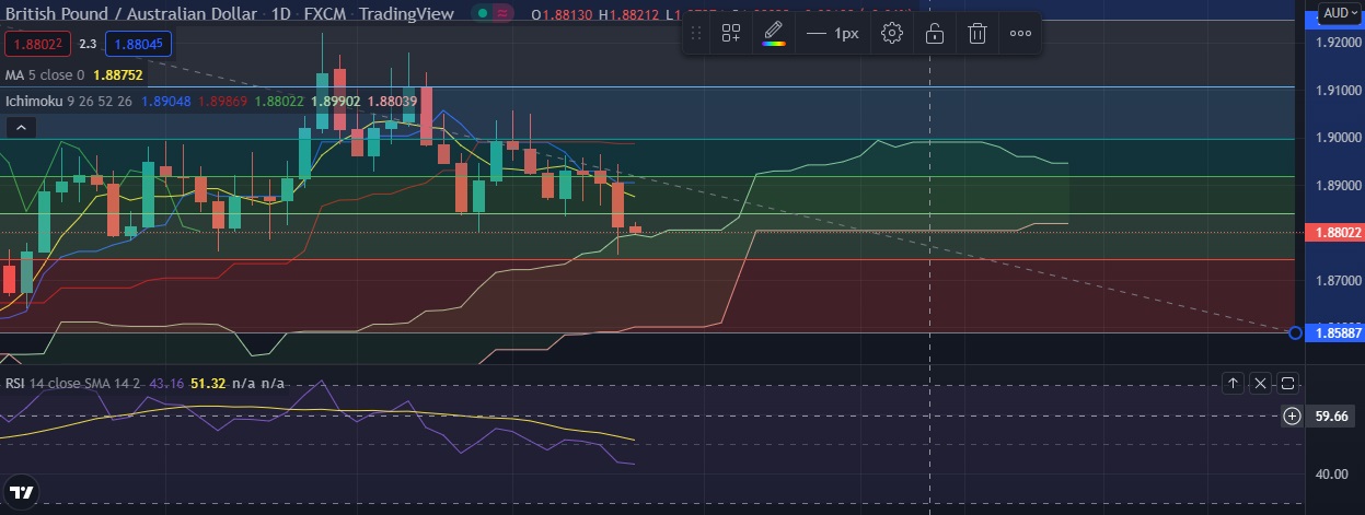• Immediate support is seen at 1.8796 (Ichimoku cloud top ), break below could take the pair towards 1.8746 (23.6%fib).