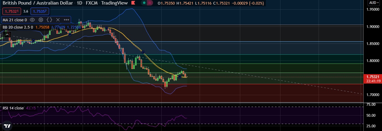 • Strong support is seen at 1.7507 ( 21DMA) and break below could take the pair towards 1.7305 ( 23.6%fib).