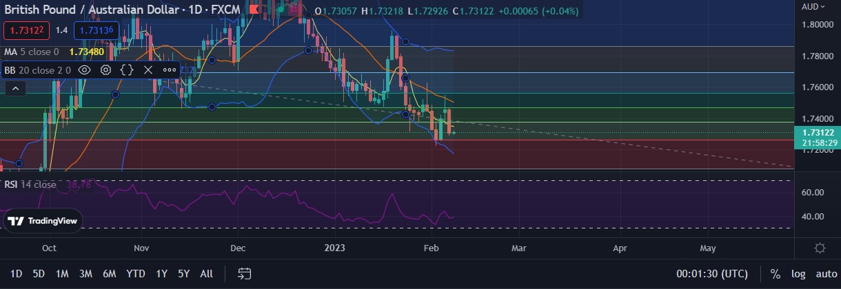 • Immediate resistance is located at 1.7350 (5DMA ), any close above will push the pair towards 1.7379 (38.2%fib).