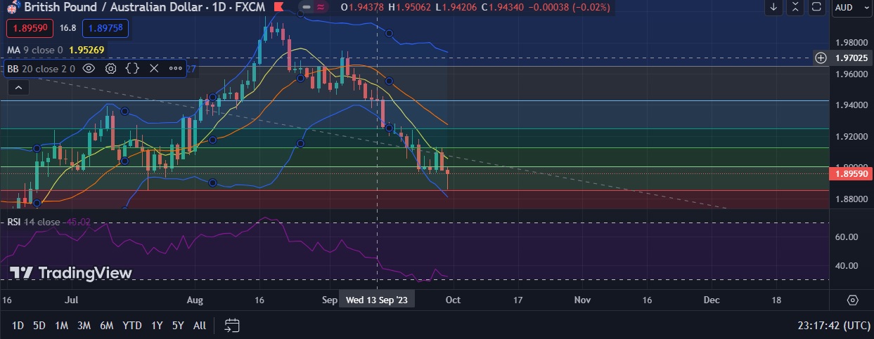 • Immediate support is seen at 1.8856(23.6%fib) and break below could take the pair towards 1.8811 (Lower BB).