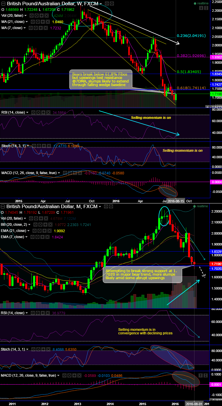 Hence, we expect the retest of multi-months lows of 1.6720 in the weeks to come amid any abrupt upswings. So it is advisable to initiate Diagonal Credit Put Spread (DCPS) in order to tackle both short-term upswings and major downtrend. To execute this option strategy one can short 1W (1%) ITM put while buying 1M (0.5%) OTM put option; the strategy could be executed at a net credit.