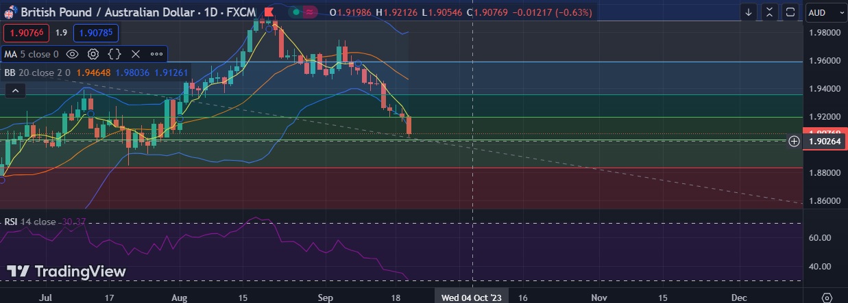 Recommendation: Good to sell around 1.9100, with stop loss of 1.9180 and target price of 1.9000