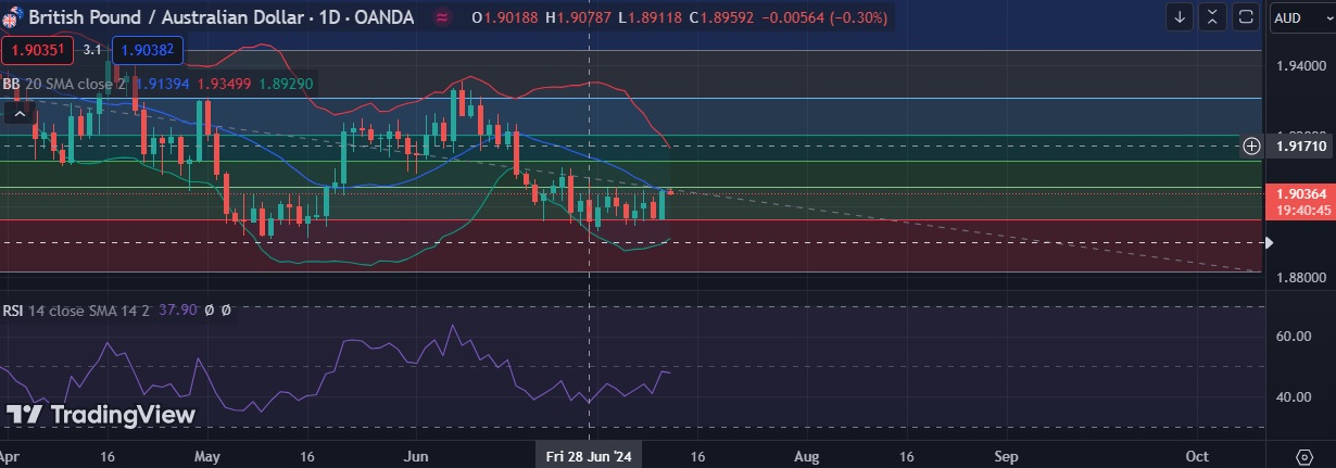 • Immediate support is seen at 1.8961 (23.6%fib) and break below could take the pair towards 1.8914(Lower BB).
