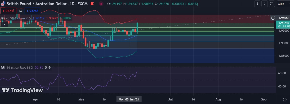 • Immediate resistance is located at 1.9322(23.6%fib), any close above will push the pair towards 1.9453 (Higher BB).
