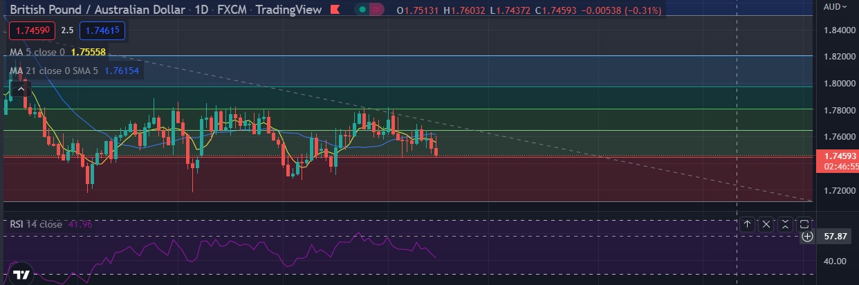 • Immediate resistance is located at 1.7564( 5DMA), any close above will push the pair towards 1.7615 ( 21DMA).