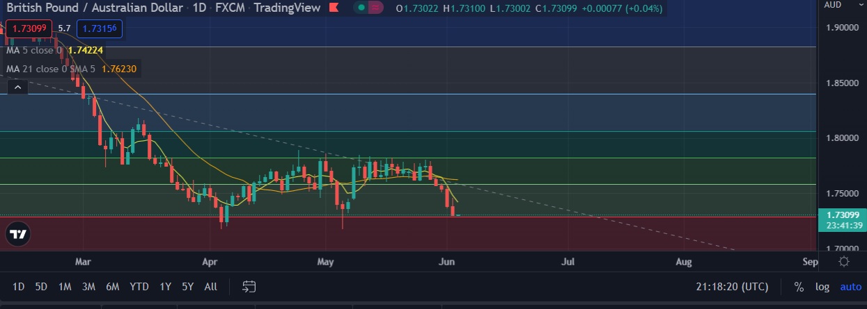 • Immediate resistance is located at 1.7434 (5 DMA ), any close above will push the pair towards 1.7576(38.2% fib).