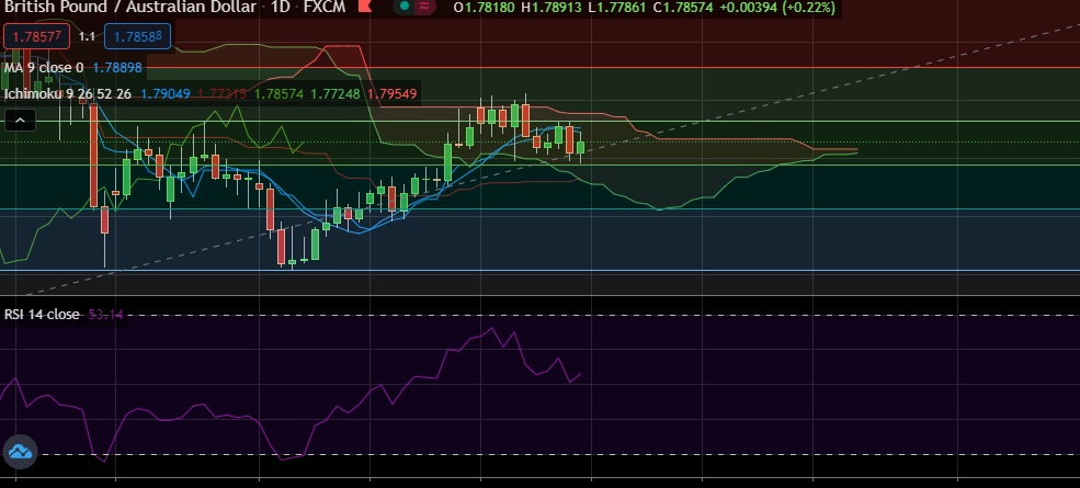 • At GMT 19:50, the pair was trading up 0.22 percent at 1.7856 after reaching daily low at 1.7782.