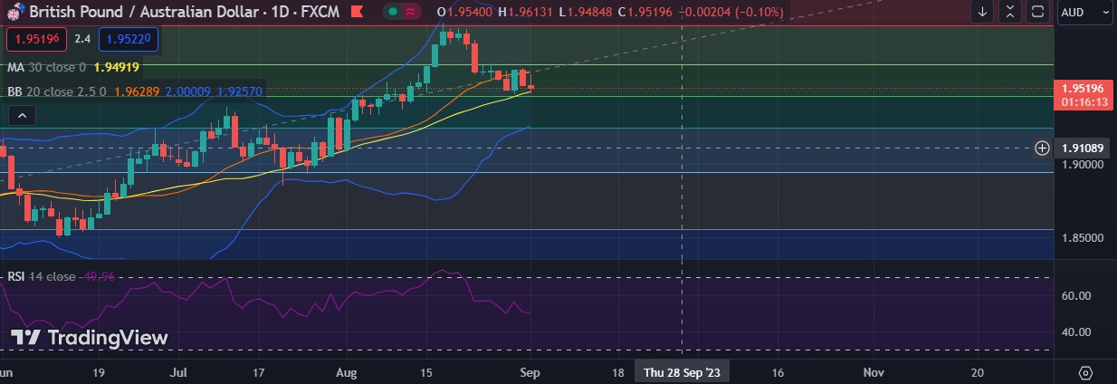 • Strong support is seen at 1.9491 (30DMA) and break below could take the pair towards 1.9470 (50%fib).