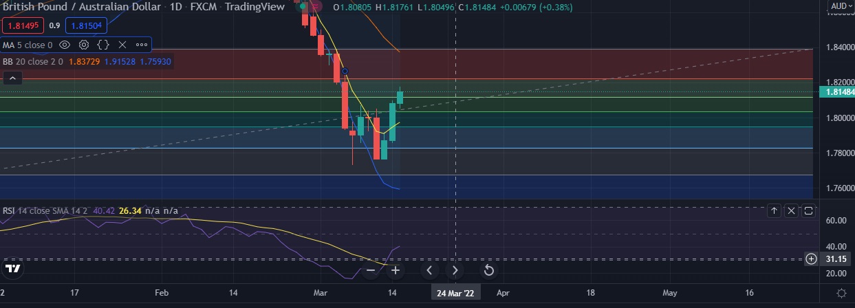 • Immediate resistance is located at 1.8180 ( Daily high), any close above will push the pair towards 1.8223 ( 23.6%fib).