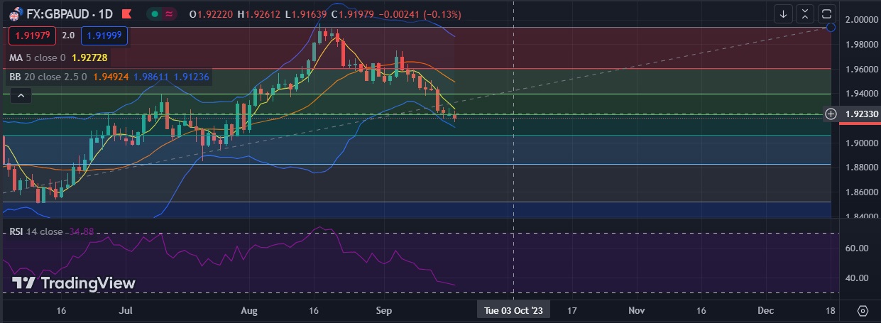 • Strong support is seen at 1.9169(Daily low) and break below could take the pair towards 1.9122 (Lower BB).