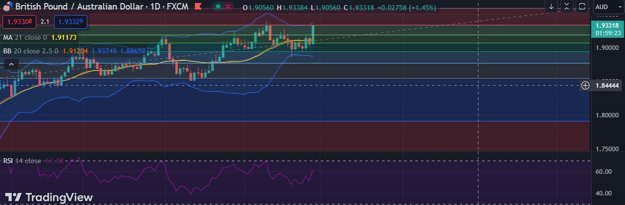 • Immediate resistance is located at 1.9327(23.6%fib), any close above will push the pair towards 1.9374 (Higher BB).