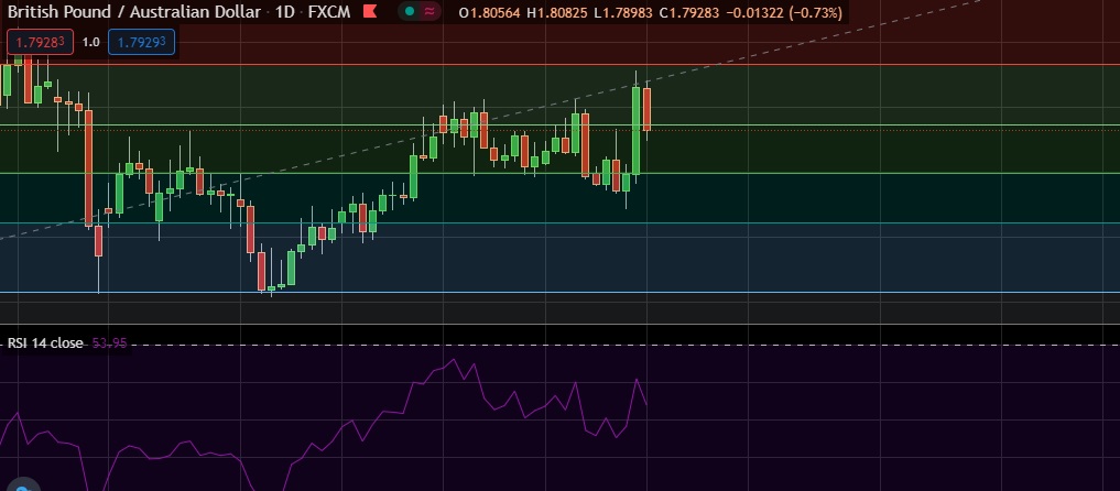 • Support is seen at 1.7799( 50% fib)and break below could take the pair towards 1.7640 (61.8% fib).