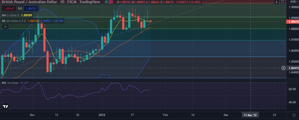• Strong support is seen at 1.8862 (5 DMA) and break below could take the pair towards 1.8802 (50%fib).